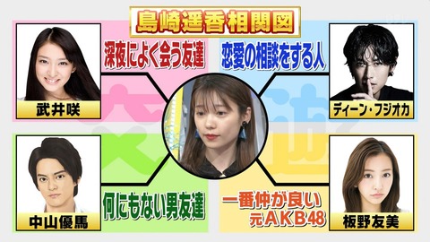 VTRを見た松本人志さんから「彼氏とも旅行したい?」と質問されると、「そうですね。彼氏いないですけど」と答える。相関図で交友関係を紹介する「芸能界ビックリ交遊録!」のコーナーでは、