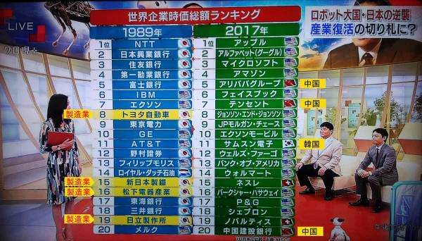 ホーム > ニュースetc > 日本の衰退っぷりがヤバい。世界時価総額上位に日本企業殆どなし 2018/02/16 1: 既にその名前は使われています 2018/01/20(土) 07:05:37.69 ID:SnT5XB1U 日本はもう終わりなのかな? 続きを読む Source: 全速 いそがしい人の全ジャンル総合2chまとめ速報 Source: アンテナHAPPY! - ニュースetc