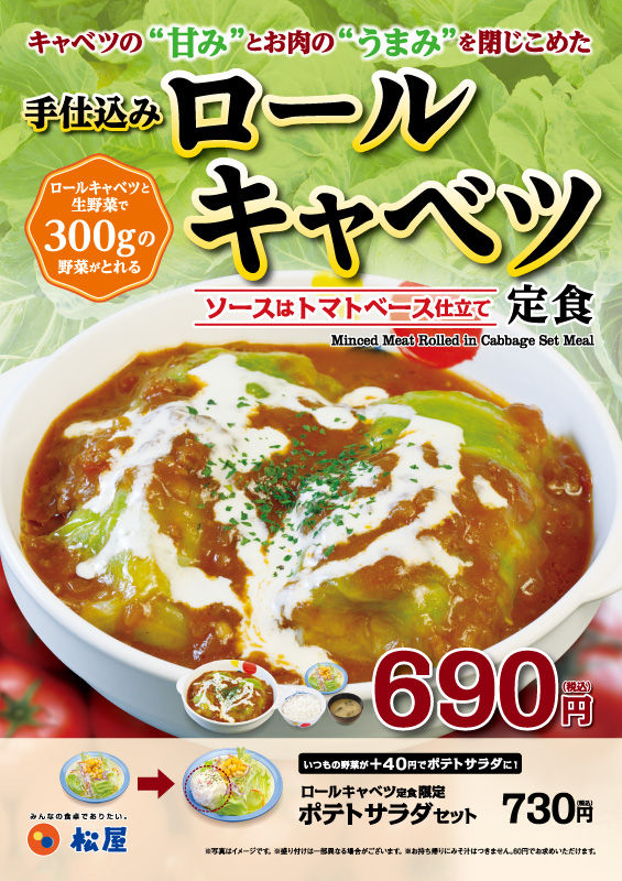 寒いこの季節に松屋特製「ロールキャベツ定食」をお召し上がりください。