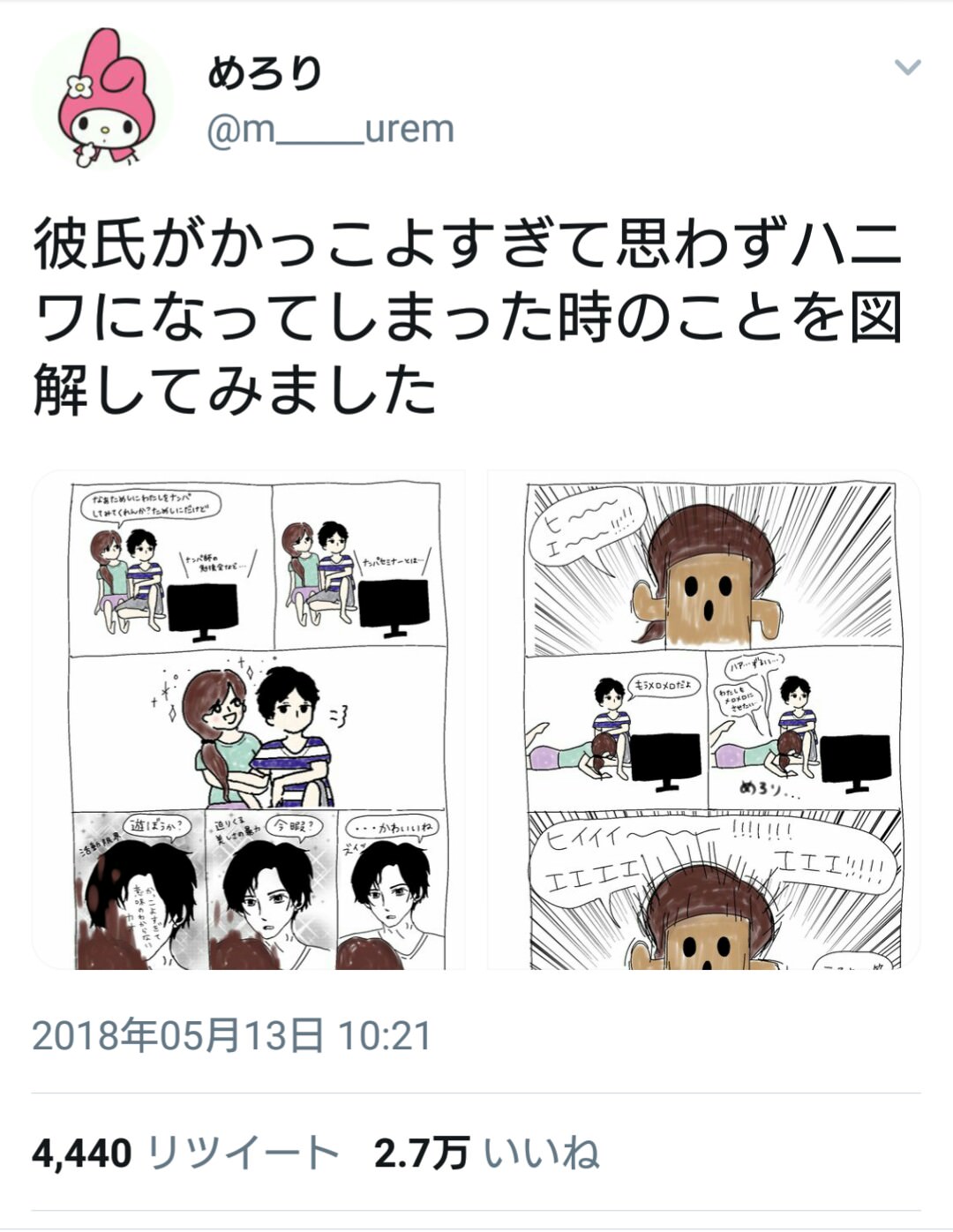 @m_____uremさんのツイート彼氏がかっこよすぎて思わずハニワになってしまった時のことを図解してみました pic.twitter.com/9COAsHwhsa