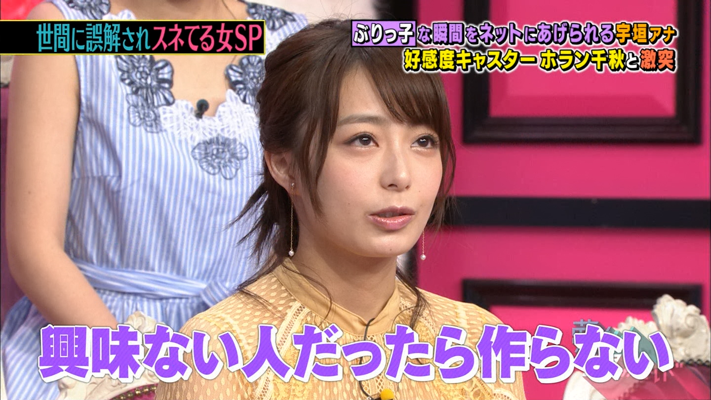 ネットに投稿される自身への否定的な意見について語った。この日の放送は「世間に誤解されスネてる女SP」。宇垣アナは自身が抱かれているイメージについて