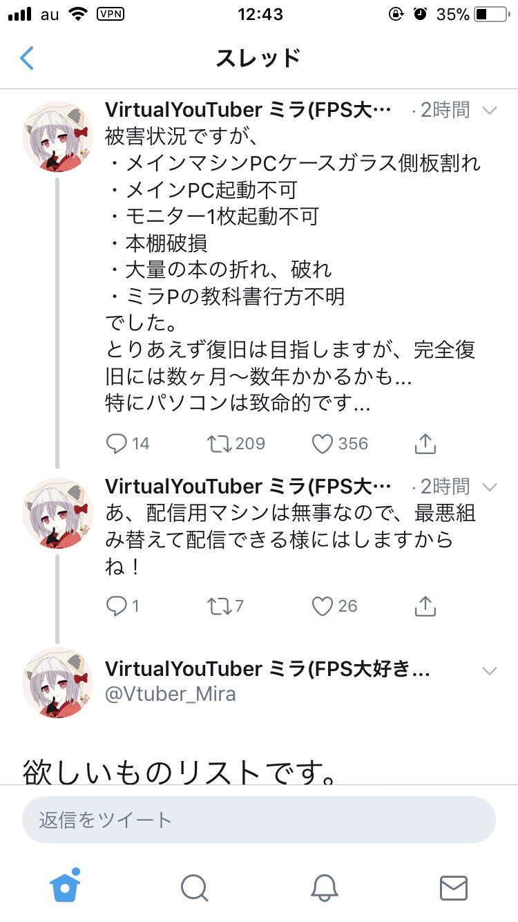 バーチャルYouTuber「地震でパソコン壊れました。ほしい物リストです」←これwwwwwwwwww