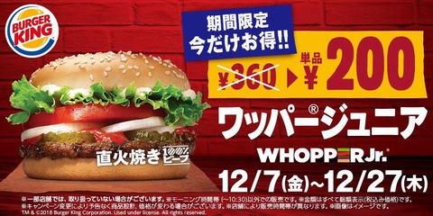 ホーム > ニュースetc > 【朗報】バーガーキングさん、神クーポンを出す (※画像あり) 2018/12/15 1:風吹けば名無し:2018/12/15(土) 12:16:26.80 ID:lkSVVG6aa.net ワッパージュニア200円 2:風吹けば名無し:2018/12/15(土) 12:16:36.20 ID:AommX9qTd.net やったぜ。 4:風吹けば名無し:2018/12/15(土) 12:16:58.32 ID:5+9oM8zF0.net 店舗がない定期 続きを読む Source: ラビット速報 - ニュースetc