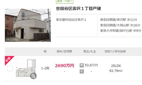 奥沢の戸建てがそんな値段で買える訳ないだろ