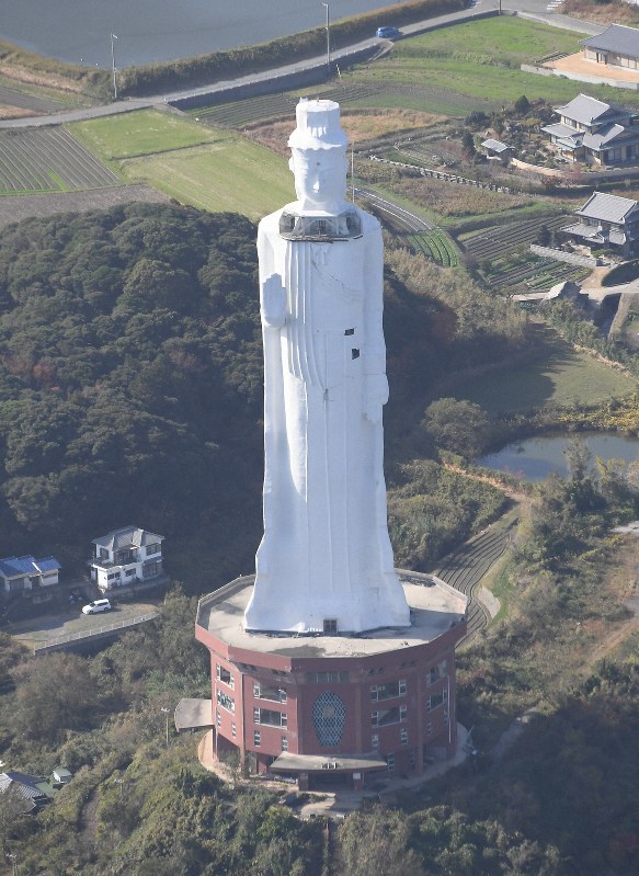 兵庫県淡路市の巨大観音像(高さ約100メートル)について、財務省近畿財務局は1日、周辺施設と共に解体撤去すると発表した。