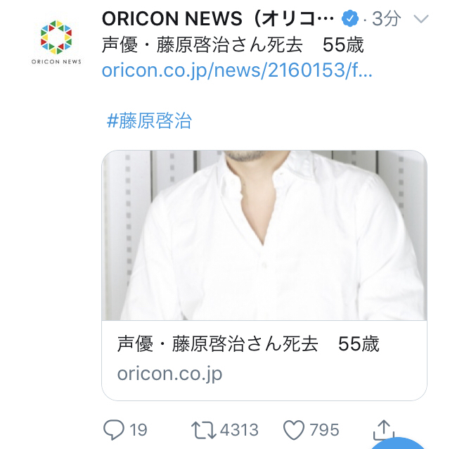 ホーム > ニュースetc > 【悲報】声優の藤原啓治さん、死去 2020/04/16 1:以下、?ちゃんねるからVIPがお送りします:2020/04/16(Thu) 16:08:10 2:以下、?ちゃんねるからVIPがお送りします:2020/04/16(Thu) 16:08:28 は? 3:以下、?ちゃんねるからVIPがお送りします:2020/04/16(Thu) 16:08:34 まじ? 続きを読む Source: ラビット速報 - ニュースetc