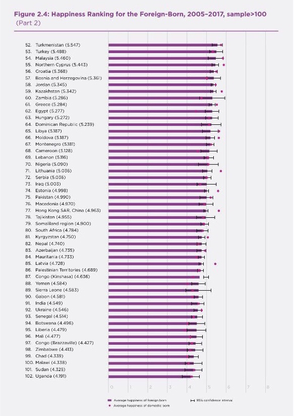移民の幸福度は主として移民先の国の生活の質次第であることを示唆している。