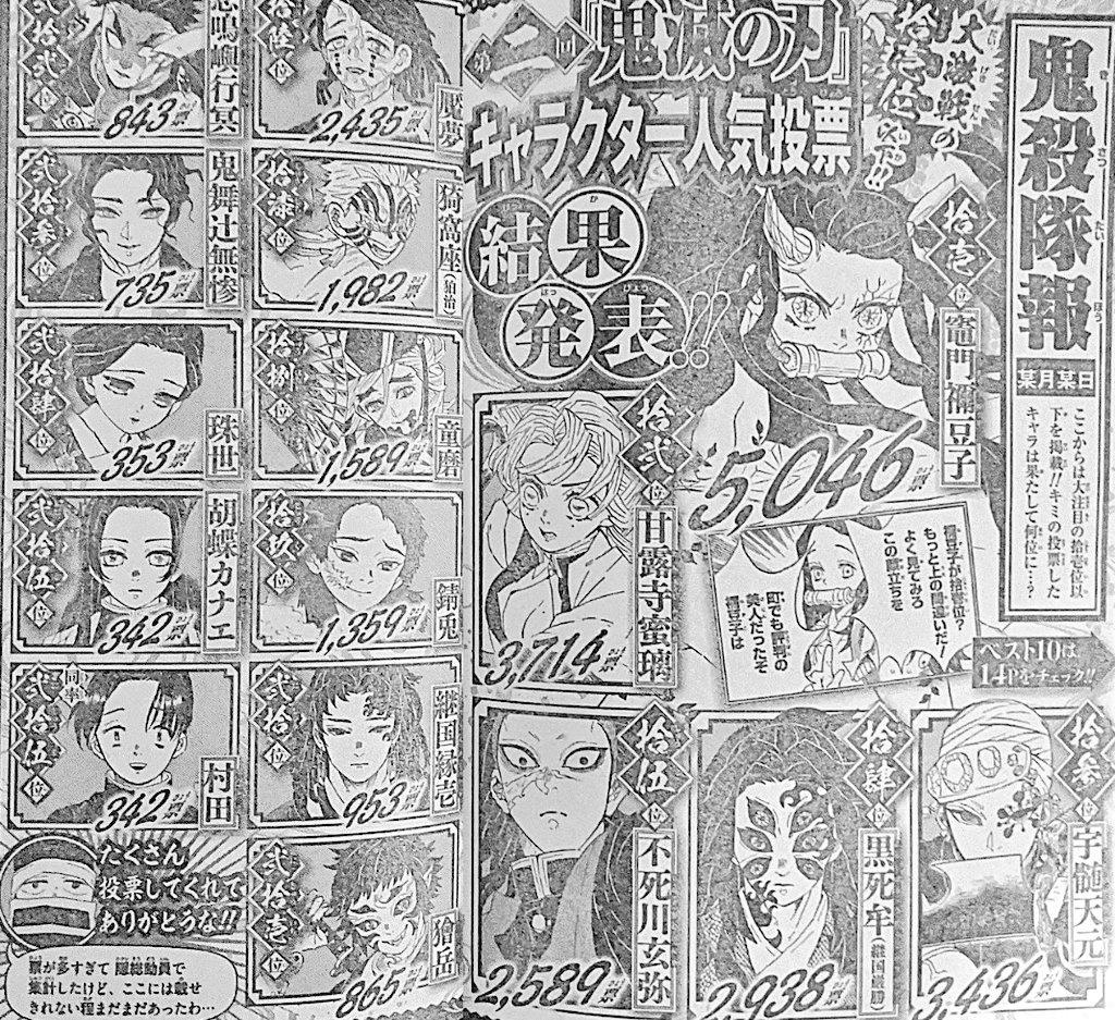 【画像】鬼滅の刃の最新の人気投票結果wwwwwwwwwwww