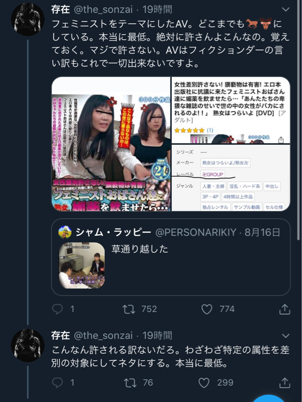 いやフェミニスト達もAVに出演したフェミニストの方を叩けよ