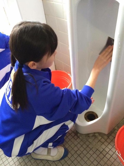 【画像】小便器を掃除させられる女子中学生が可愛すぎるwwwwwwww