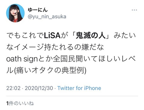 【画像】陰「LiSAは鬼滅の人だと思ってる陽へ」