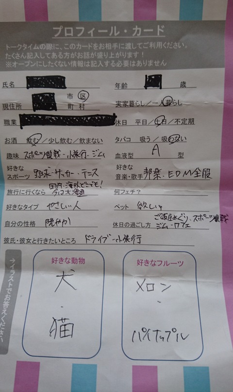 【画像】街コンではこんなプロフィールを渡すらしいwwwwwwwwwwwwwwwwwwwwwwwwwwwwwwwww