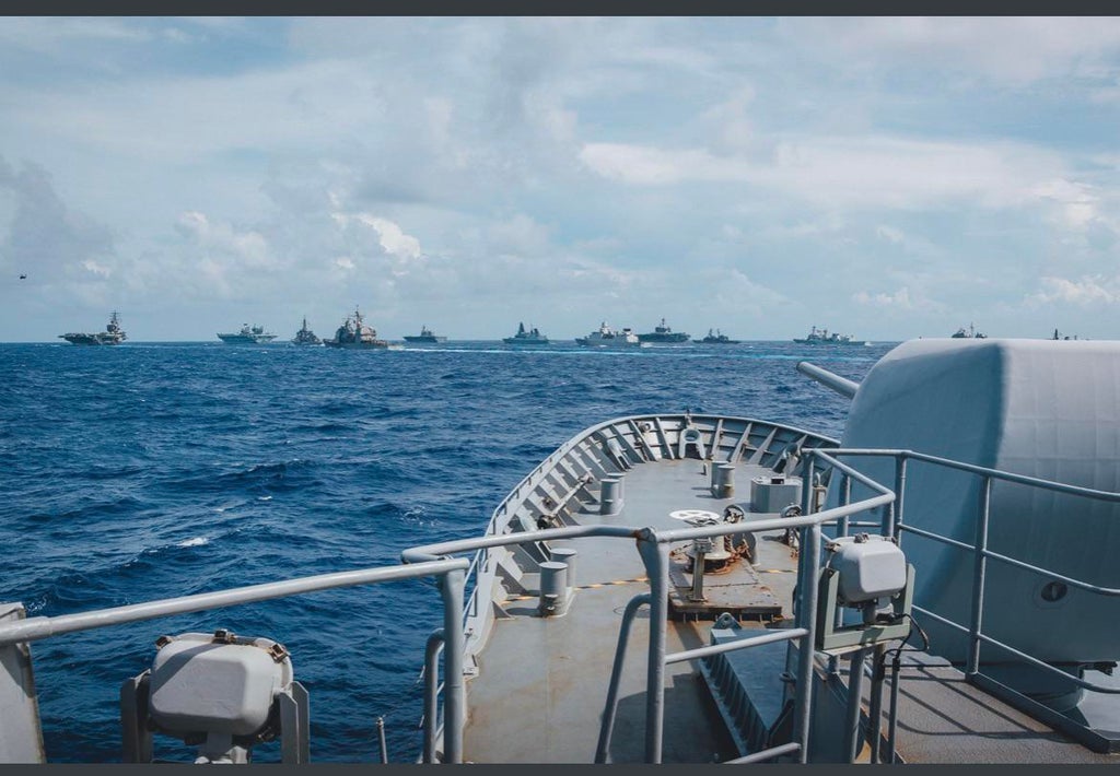係争中の南シナ海をイギリス、アメリカ、オランダ、日本、カナダの艦隊と共に