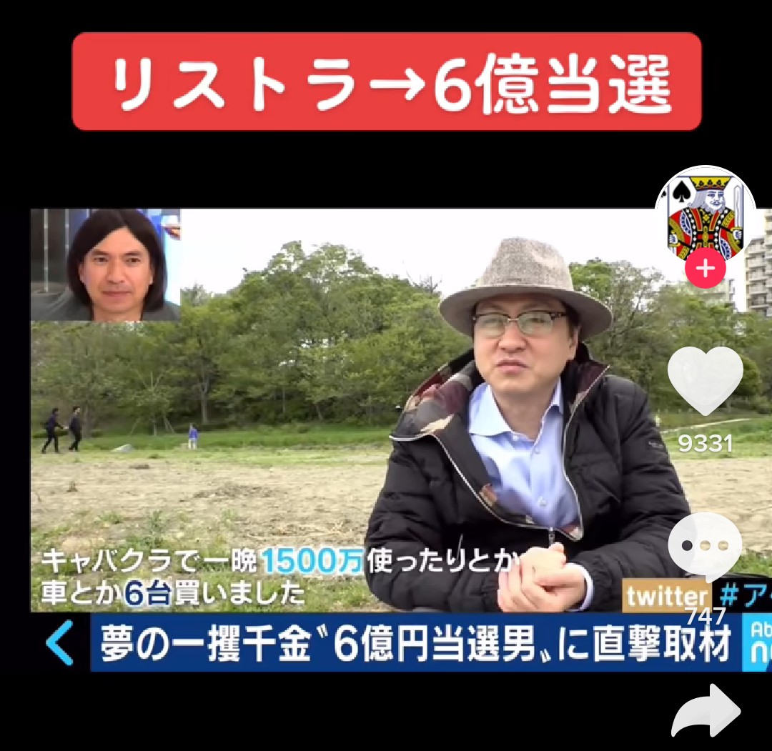 ホーム > ニュースetc > 【画像】宝くじ6億当選おじさん、キャバクラで一晩1500万の豪遊&高級車6台購入 2021/11/01 1:以下、?ちゃんねるからVIPがお送りします:2021/10/31(日) 20:31:11.642 ID:G6aLzVYG0.net 金どう使えばいいのか分からなかったんだろうな w w w 2:以下、?ちゃんねるからVIPがお送りします:2021/10/31(日) 20:31:45.302 ID:mPcl2ddAa.net アホだろ死ねよ 続きを読む Source: ラビット速報 - ニュースetc