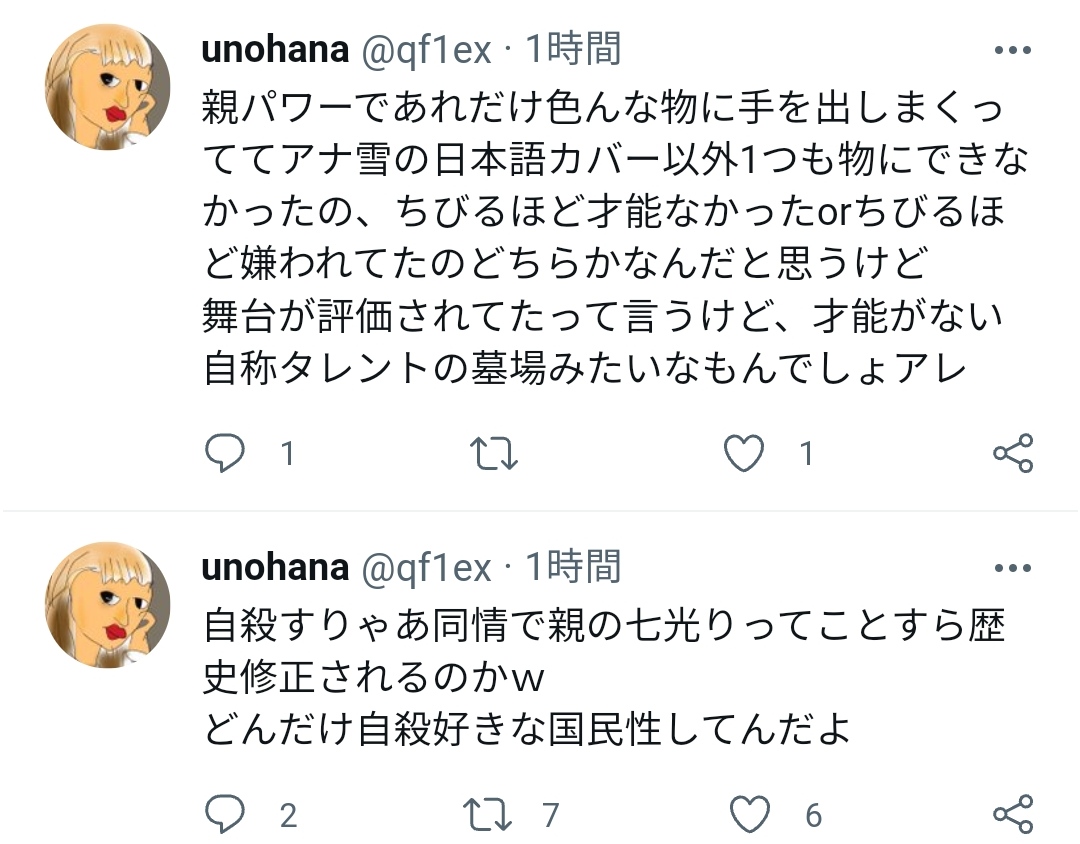 ツイ民「自殺すれば親の七光りが実力派女優に歴史修正される。どんだけ自殺が好きな国民性なんだよ」