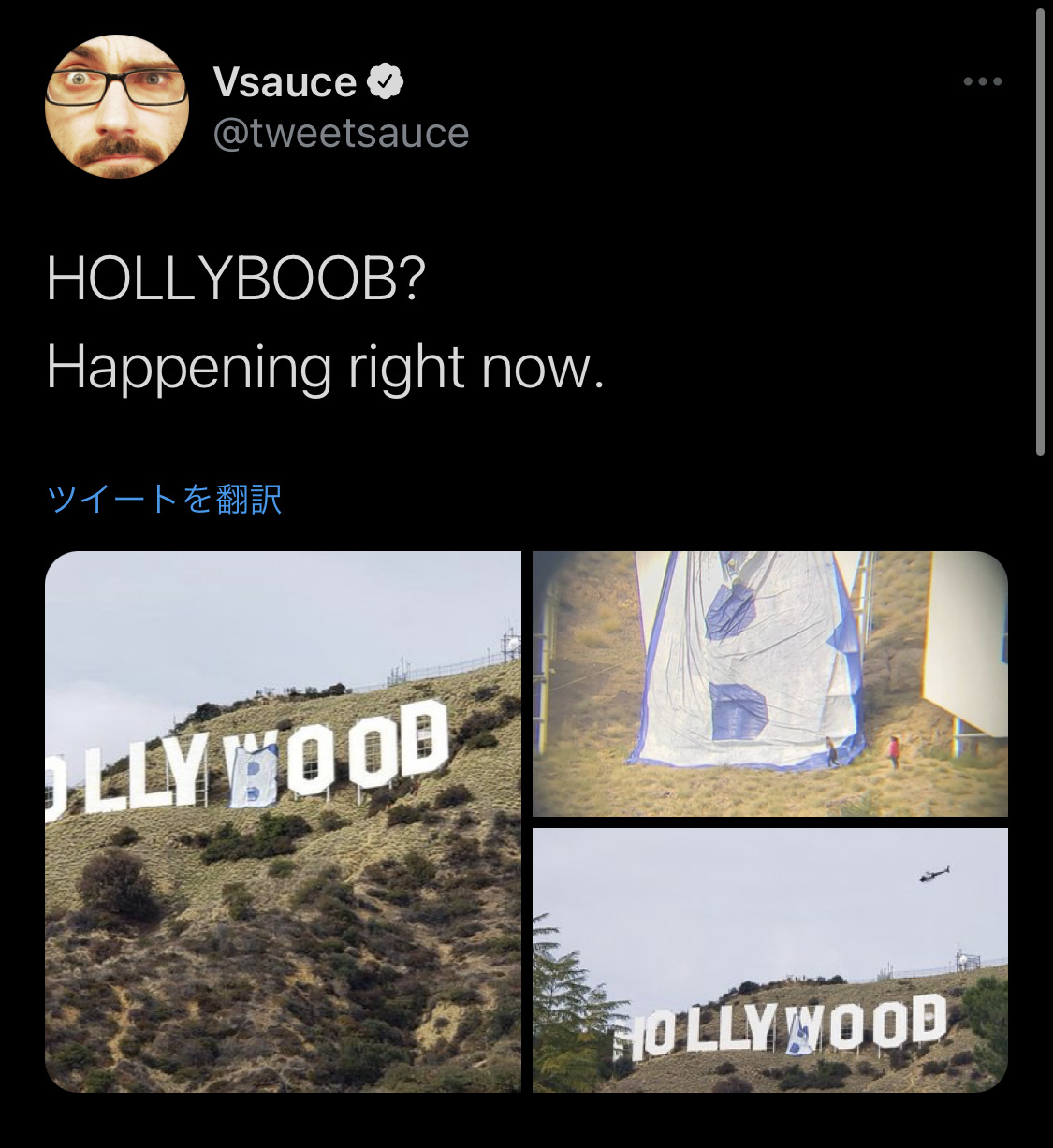 YouTuberとして有名なマイケル・スティーブンス氏がTwitterに「HOLLYBOOB?今まさに起こっていること」という内容と共に、3つの写真を投稿しました。