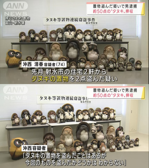 【画像】タヌキを盗みまくった男、逮捕wwwwwwwwww