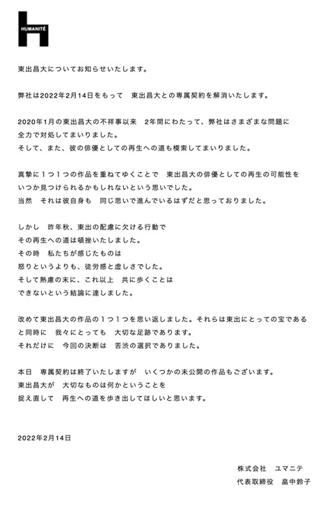 【悲報】東出不倫昌大さん、芸能事務所解雇