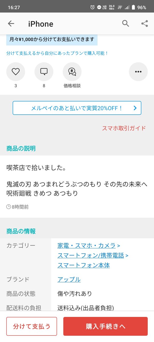 ホーム > ニュースetc > 【画像】メルカリ民「喫茶店でiPhone拾いました。8000円でどうですか?」 2022/02/23 1: 風吹けば名無し 2022/02/22(火) 12:21:58.99 ID:7n9ywP9Q0.net 続きを読む Source: 妹はVIPPER - ニュースetc
