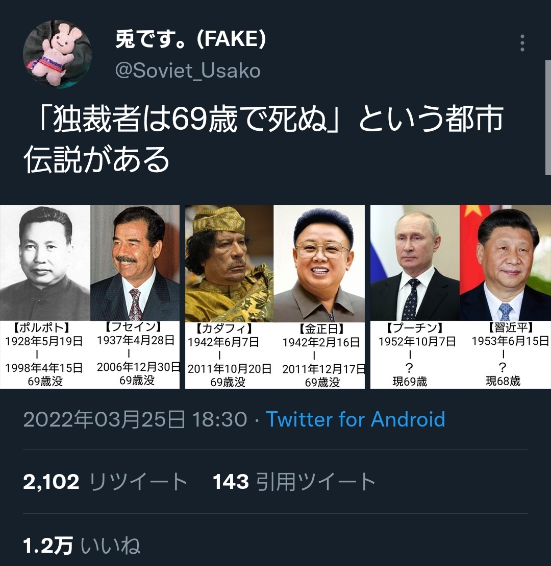 ホーム > ニュースetc > 【画像】プーチン、今年中に死ぬことが確定してしまうwwwwwwwwww 2022/03/26 1:以下、?ちゃんねるからVIPがお送りします:2022/03/25(金) 21:11:34.770 ID:ejWg6/Nx0.net ご冥福をお祈りします…… 続きを読む Source: ラビット速報 - ニュースetc