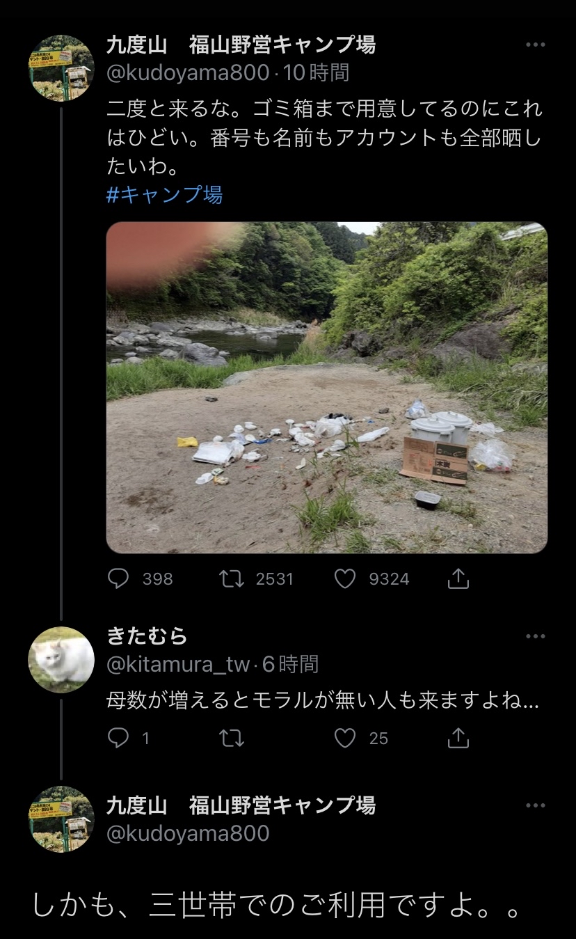 キャンプ場経営者「二度とくるな!これは酷い。番号も名前も全部晒したい」 (画像あり)