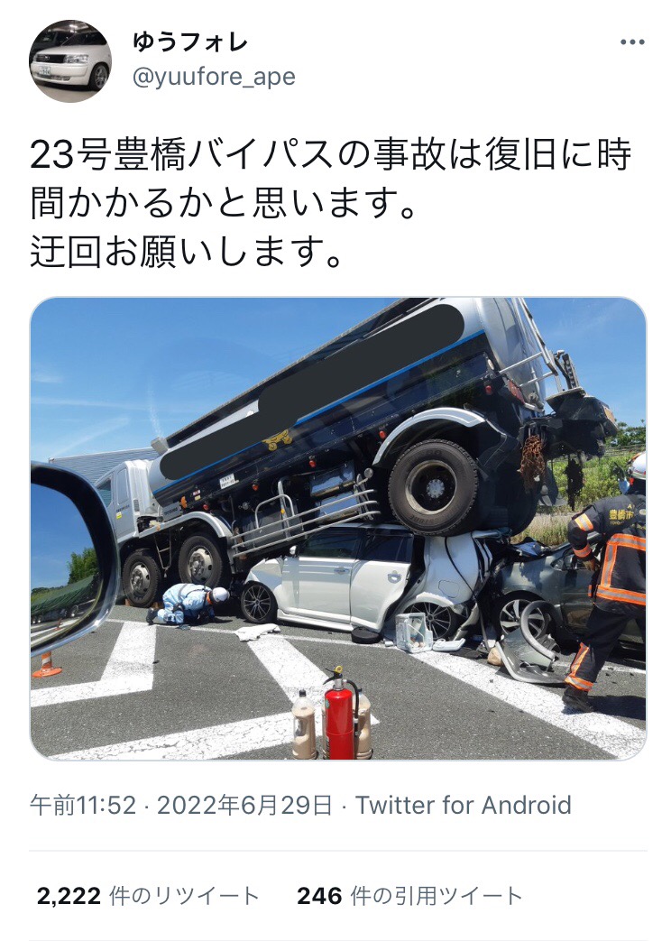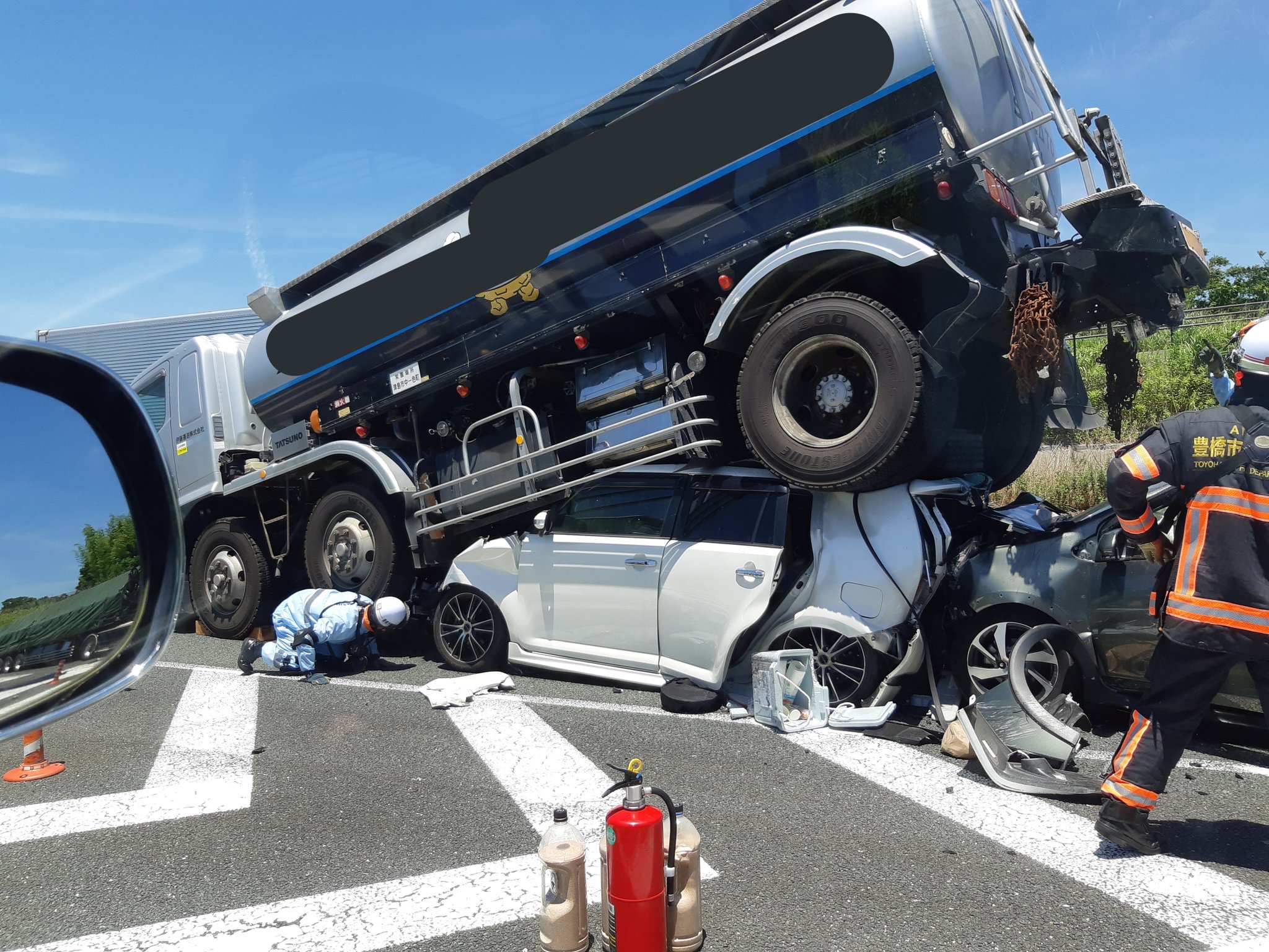 軽だったら大型車の下敷きでペラッペラになってたぜ