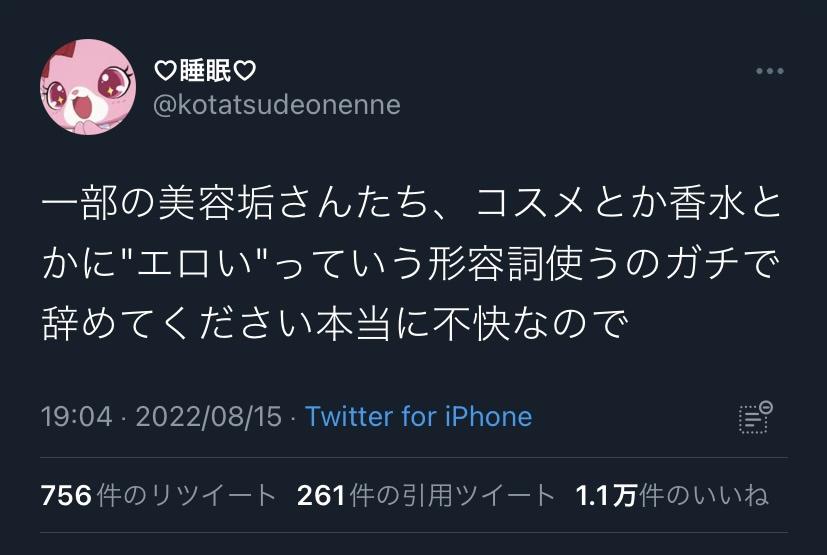 ホーム > ニュースetc > 【画像】Twitterまんさん「美容の話でエロいという言葉は使わないで下さい」 2022/08/18 1:以下、?ちゃんねるからVIPがお送りします:[ここ壊れてます] .net たしかに 5:以下、?ちゃんねるからVIPがお送りします:[ここ壊れてます] .net エロいが不快とは 一生赤ちゃんいらないんだな 続きを読む Source: ラビット速報 - ニュースetc