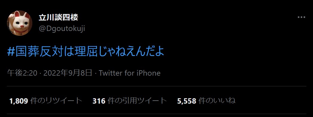 【悲報】国葬反対派、とくに理屈があって反対しているわけではなかった模様wwwwwwwwww