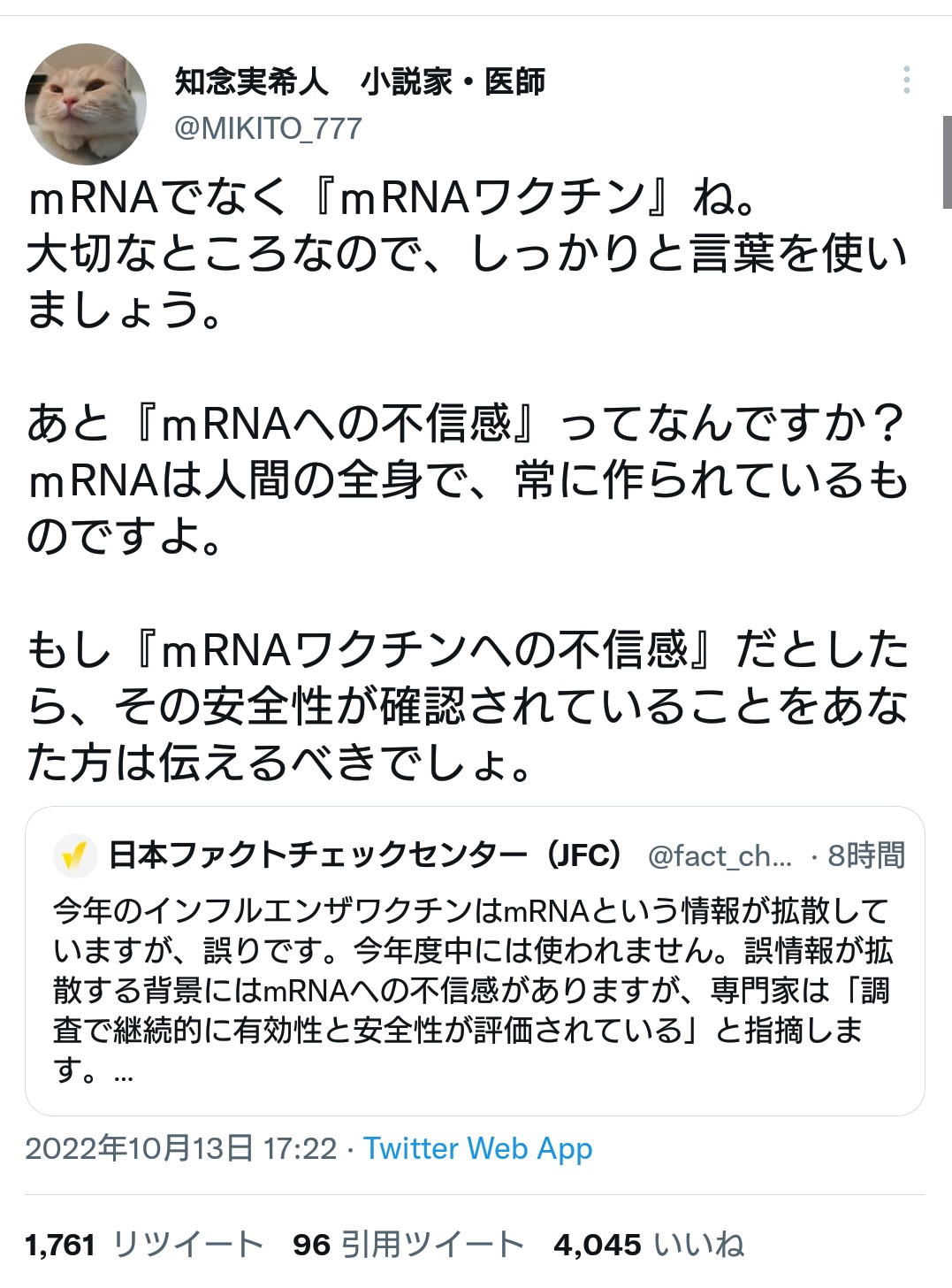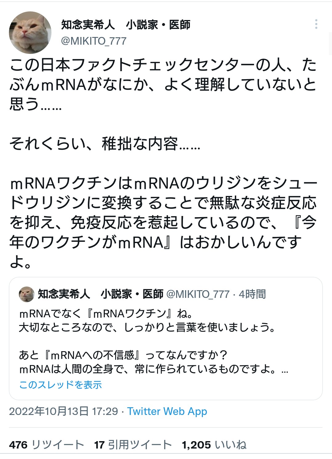 【朝日新聞】 日本ファクトチェックセンターさん 医師にファクトチェックされ叱られてしまうwwww