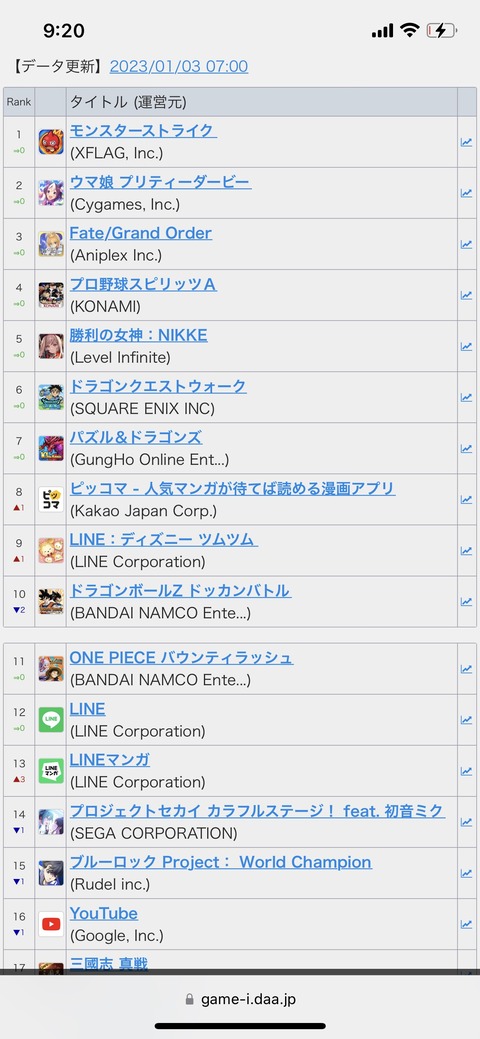 【画像】この正月、弱者男性から金を巻き上げたソシャゲランキングがこれだwwwwwwwwwwwwwwwwwwwwwwww