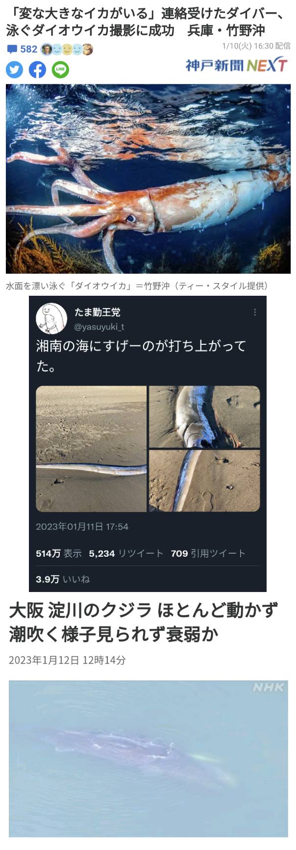 ホーム > ニュースetc > 【悲報】巨大地震、ガチできそう 2023/01/19 1: 2023/01/19(木) 02:49:51.85 ID:7f817k0J0.net ここ数日海洋生物が異常行動を起こしまくってるらしい 2: 2023/01/19(木) 02:50:08.30 ID:7f817k0J0.net どうすんのこれ… 続きを読む Source: 妹はVIPPER - ニュースetc