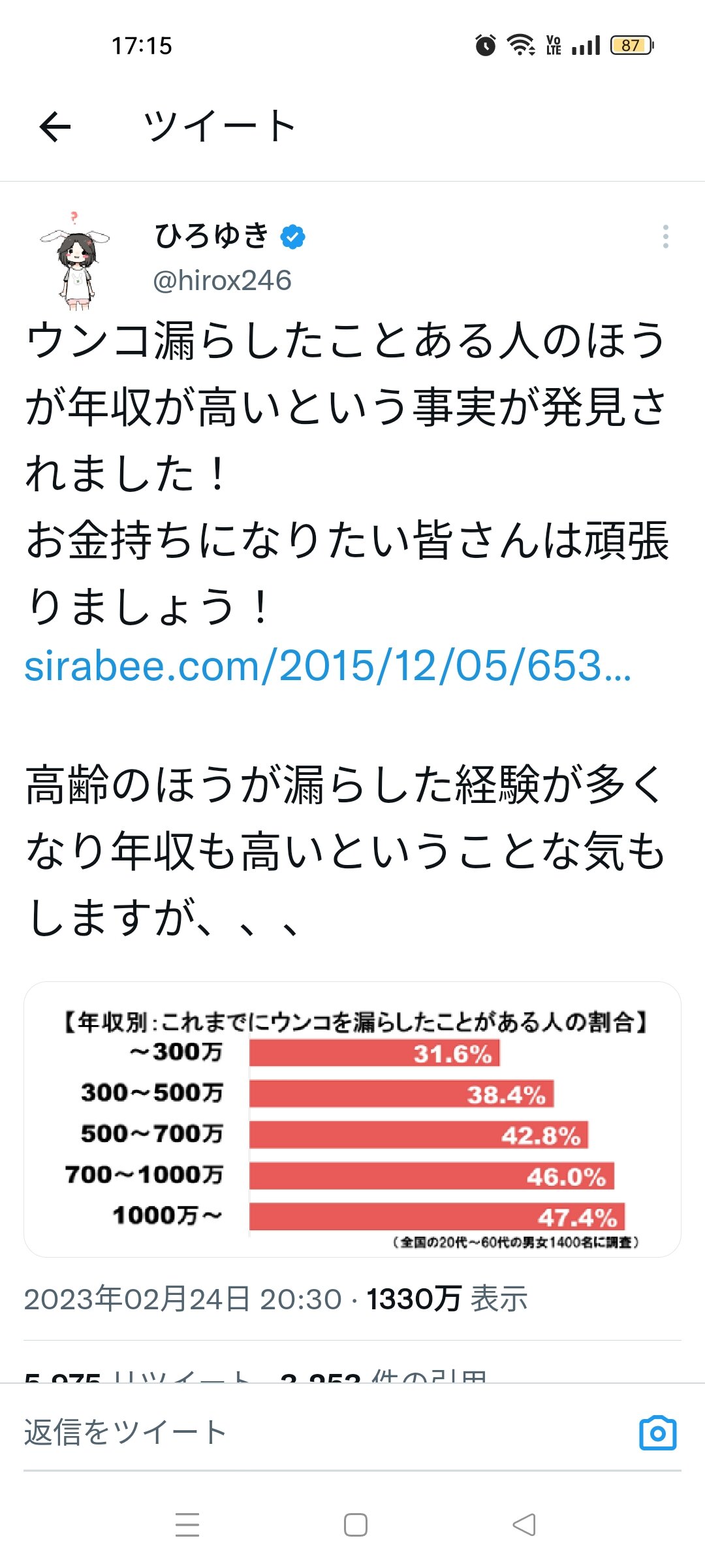 ホーム > ニュースetc > 【朗報】ひろゆき「うんこ漏らしたことある人のほうが年収が高いという事実が発見されました!」 2023/02/28 1: 風吹けば名無し 2023/02/27(月) 17:17:31.57 ID:hdNGkQ+T0.net 2: 風吹けば名無し 2023/02/27(月) 17:17:40.70 ID:hdNGkQ+T0.net ひろき‥😭 続きを読む Source: 妹はVIPPER - ニュースetc