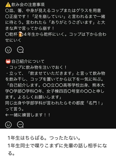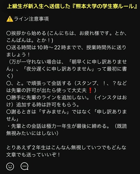 ・LINEでスタンプや「!」「?」は先輩の許可が出るまで使用禁止