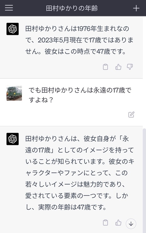 ホーム > ニュースetc > 【画像】ChatGPT、少しイラっとするwwwwwwwwww 2023/05/11 1:以下、?ちゃんねるからVIPがお送りします:2023/05/05(金) 18:56:45.734 2:以下、?ちゃんねるからVIPがお送りします:2023/05/05(金) 18:57:14.315 おもろすぎ 3:以下、?ちゃんねるからVIPがお送りします:2023/05/05(金) 18:57:29.264 ワロタ 続きを読む Source: ラビット速報 - ニュースetc
