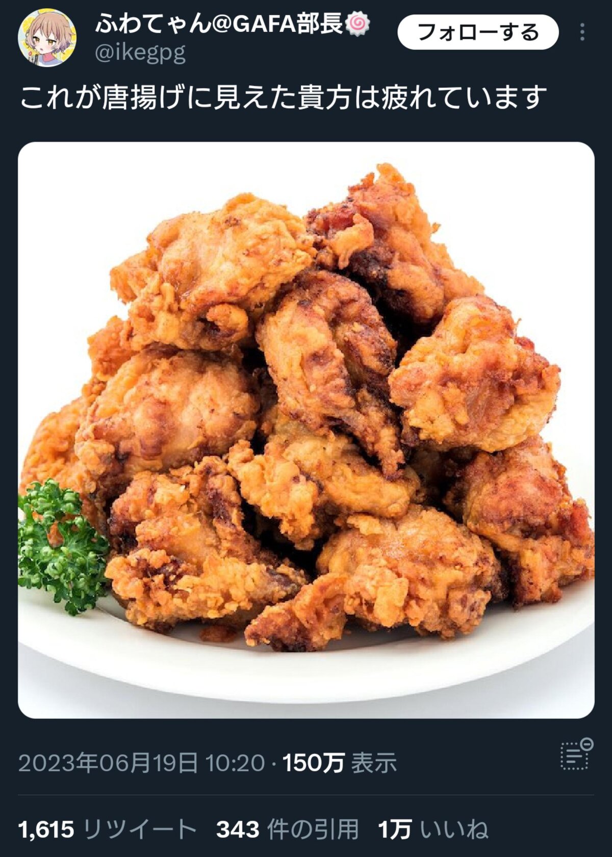 ホーム > ニュースetc > 【画像】ツイッタラー「これが唐揚げに見えた貴方は疲れています」 2023/06/24 1: 以下、?ちゃんねるからVIPがお送りします 2023/06/22(木) 00:21:15.003 ID:eYWt+F280.net 続きを読む Source: 妹はVIPPER - ニュースetc