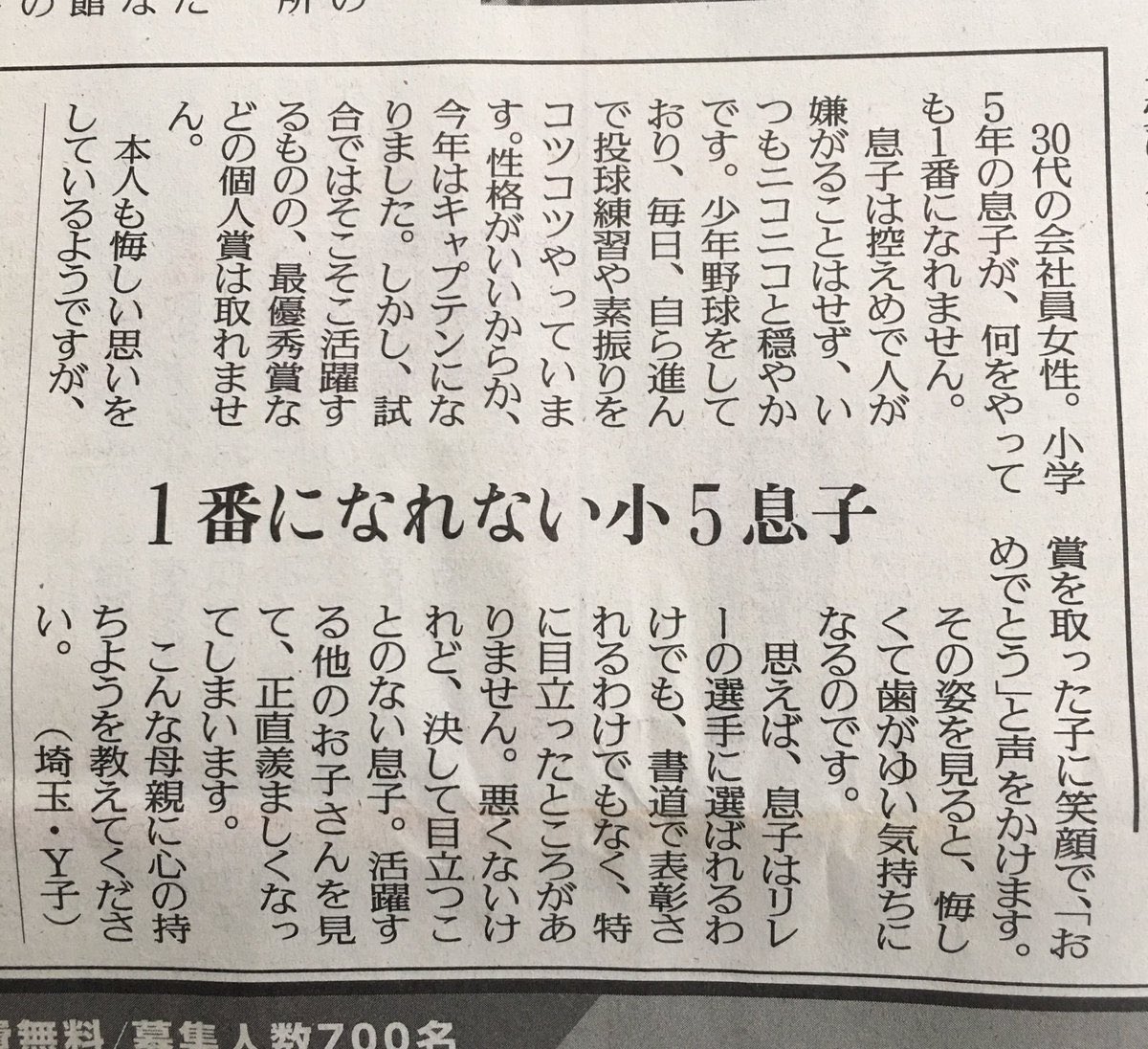 【悲報】女さん「息子は何をやっても一番になれない。活躍する他のお子さんが羨ましい」
