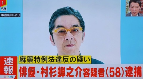 俳優の村杉蝉之介、麻薬に手を出して警察に捕まってしまうwwwwwwwwwwwwwwwww