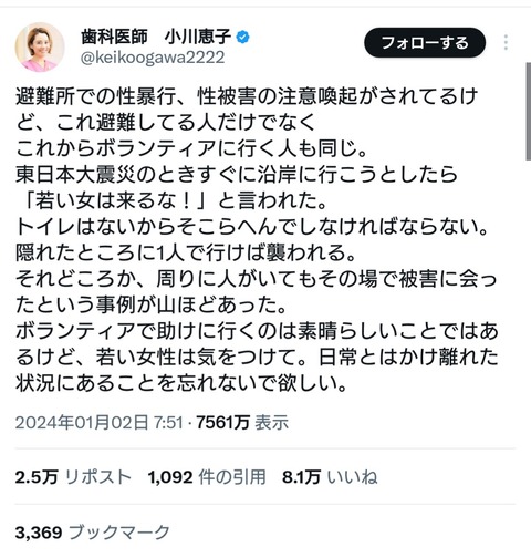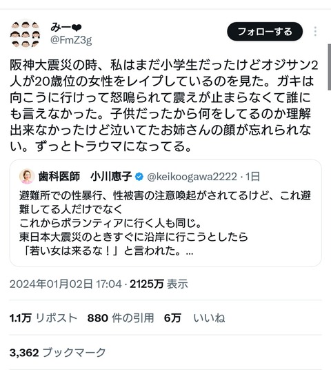 【炎上】 フェミニストさん ここぞとばかりに日本人男を叩きまくる 被災者まで性犯罪者扱い