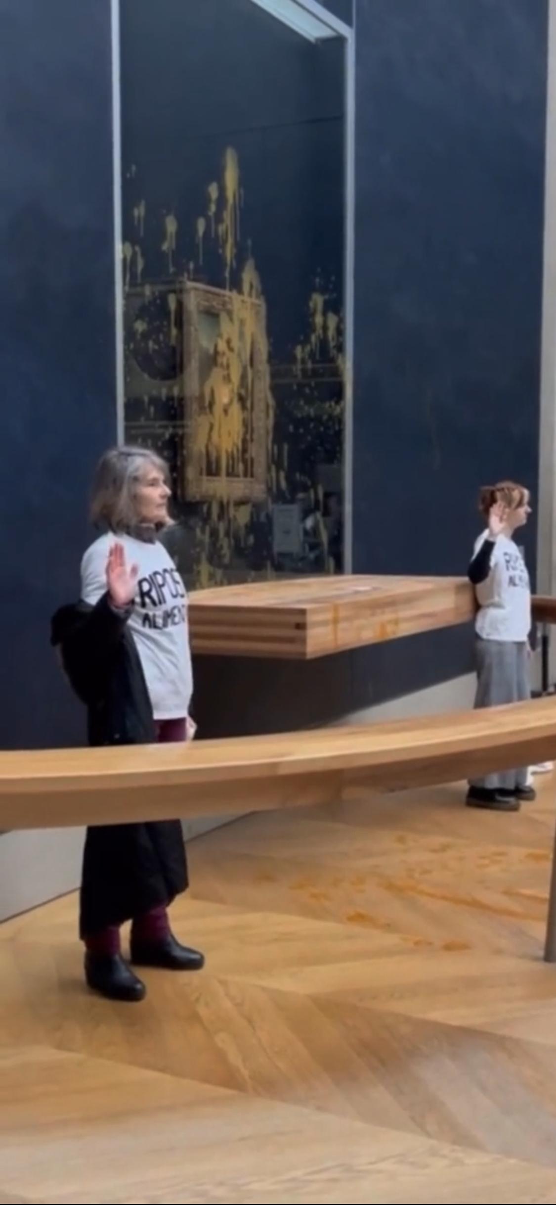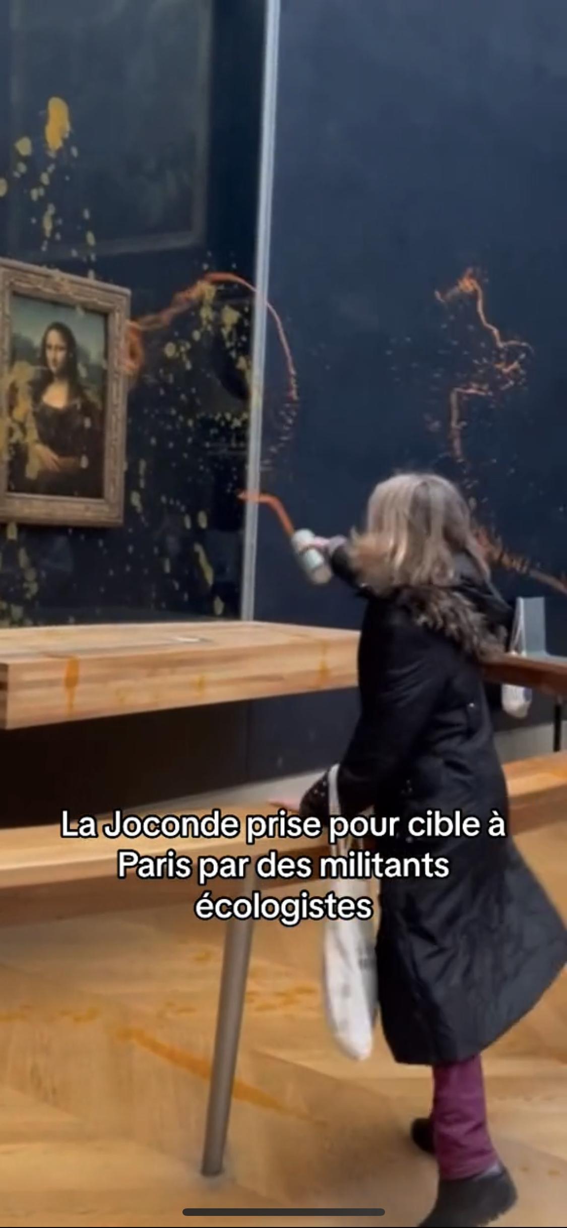 【画像】「環境活動家」さん、ついにルーブル美術館館で「モナリザ」にスープをぶっかけてしまう・・・