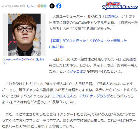 ヒカキン「チャンネル登録者1245万人越えで外歩いたら10秒でヒカキンやんってなる僕が一般人?」