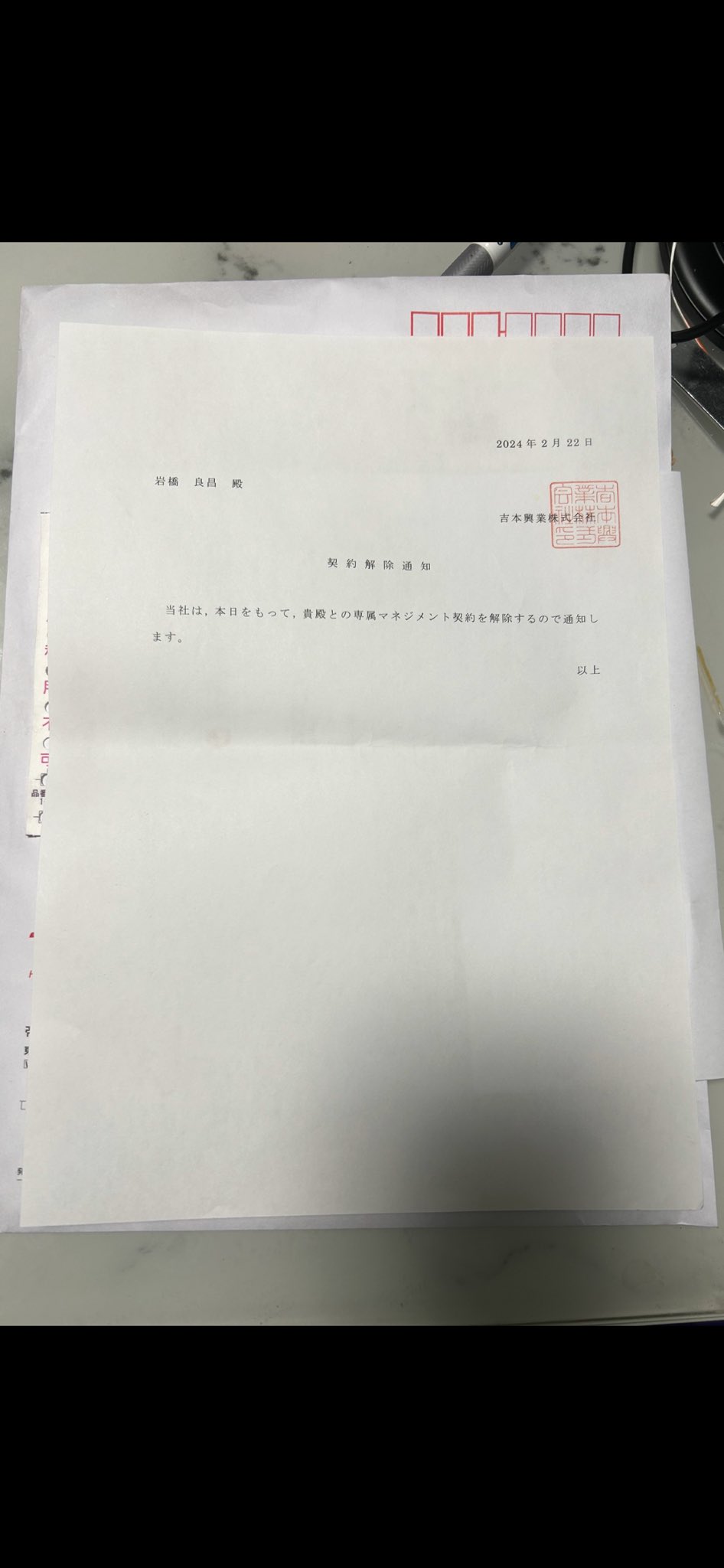 ホーム > ニュースetc > 【悲報】吉本興業さん、プラマイ岩橋に紙切れ1枚を送りつけてしまう 2024/03/12 1: それでも動く名無し 2024/03/11(月) 18:55:09.73 ID:GjfKgJdu0.net IWAHASHI@maeeeeen 寂しい紙が届いてたよ 20年以上やって この紙1枚で終わりだよ 2: それでも動く名無し 2024/03/11(月) 18:55:33.06 ID:GjfKgJdu0.net ひどすぎるやろ… 続きを読む Source: 妹はVIPPER - ニュースetc