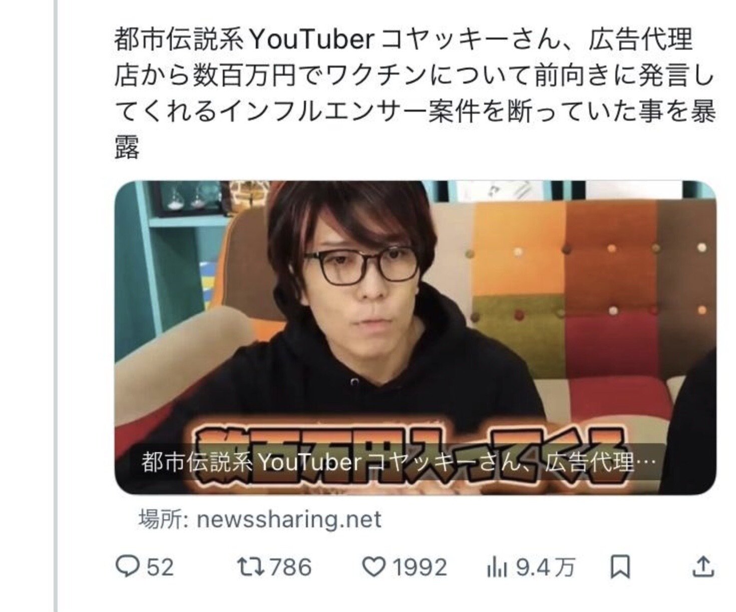【悲報】日本一のYouTuberさん、金を貰ってコロナワクチンを宣伝した事をバラされて炎上