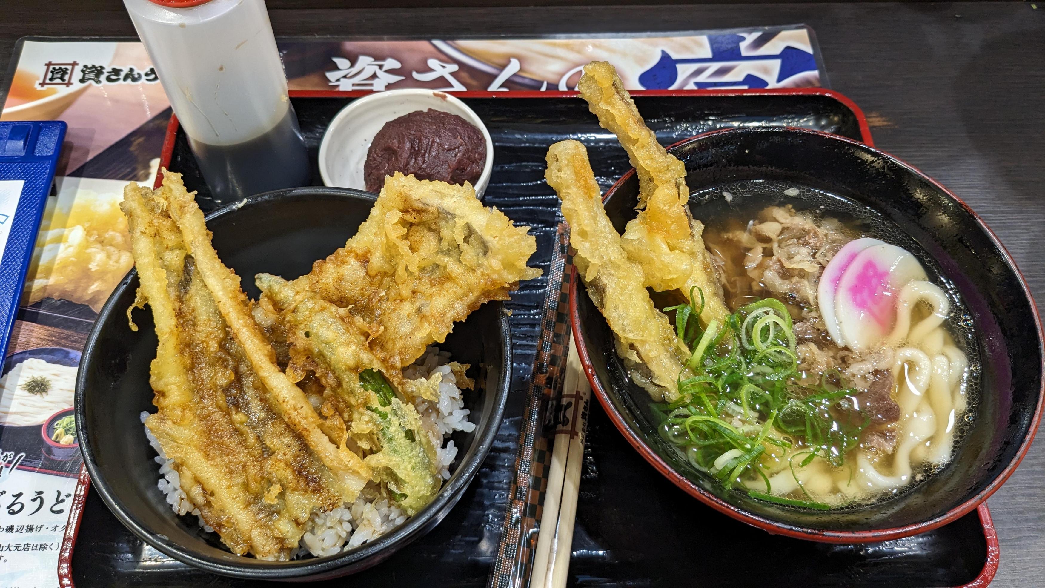 資さんうどん 穴子天丼肉ごぼ天セット(おはぎ付き)