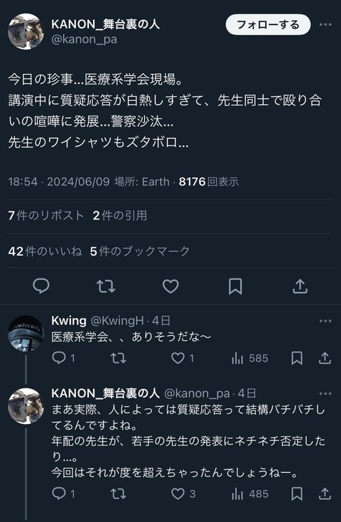 日本のお医者さん、学会発表でヒートアップしすぎてしまい殴り合いの警察沙汰wwwwwwwwwwww