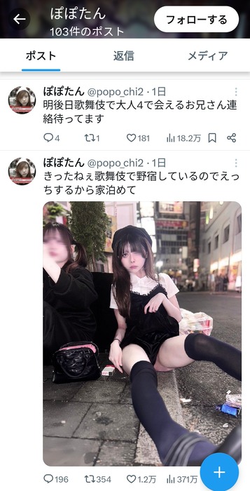 【画像】トー横女さん「歌舞伎町で野宿してます、エッチするからひと晩泊めて」