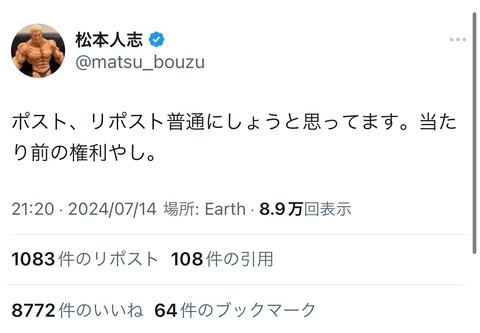 【速報】松本人志、ツイートwwwwwwwwwwww