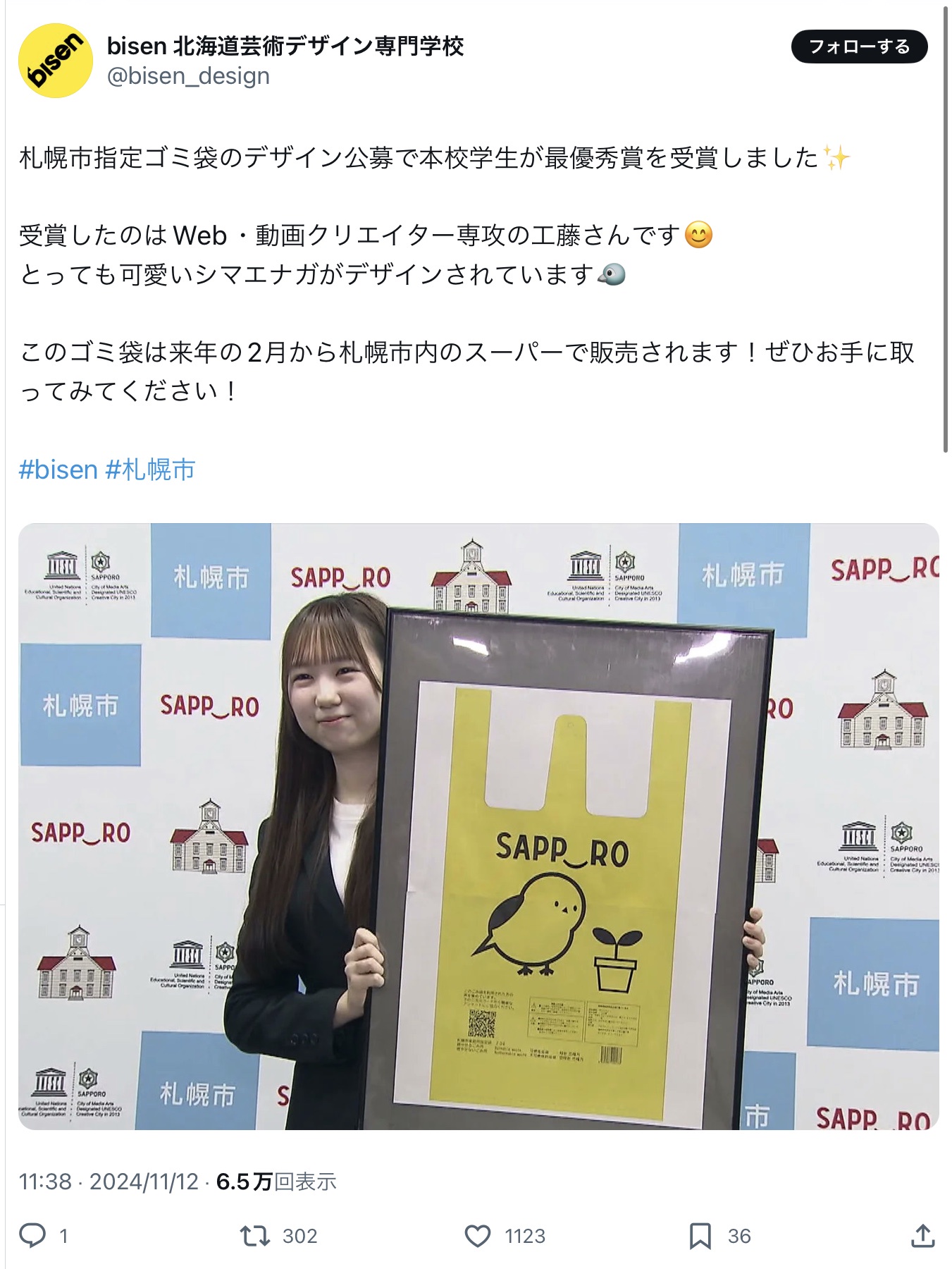 【画像】札幌市のゴミ袋をデザインした学生が可愛いwwwwwwwwww