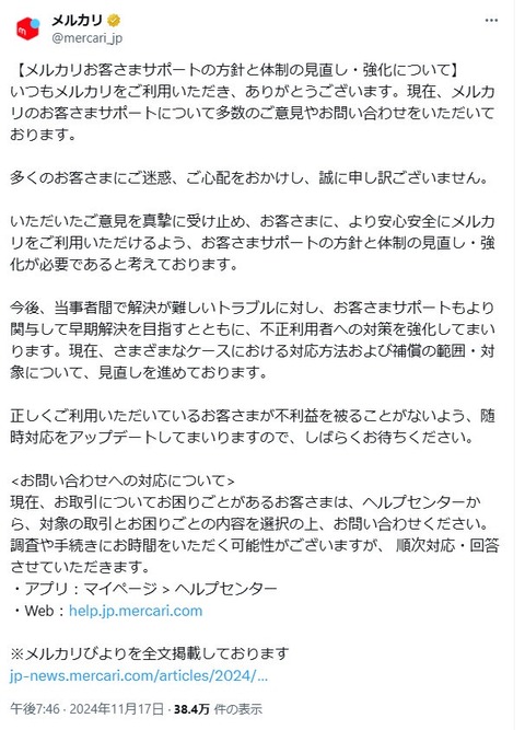【朗報】メルカリ、ちゃんとゴメンなさいが出来るいい子でしたwwwwwwww
