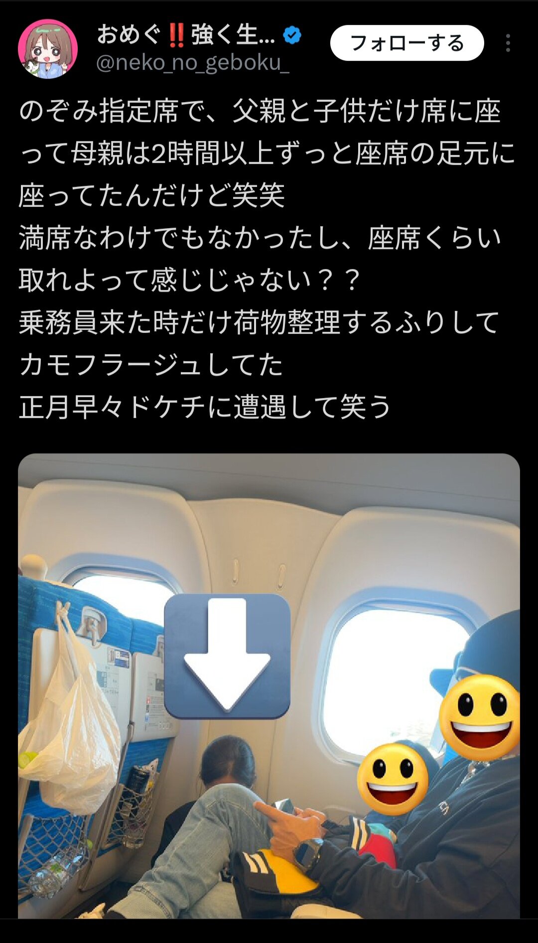 ホーム > ニュースetc > 【画像】日本人、ついに新幹線で床に座り始めるwwwwwwwww 2025/01/03 1: それでも動く名無し 2025/01/03(金) 02:27:51.34 ID:X/Dgmimt0.net 貧困がヤバい 続きを読む Source: 妹はVIPPER - ニュースetc