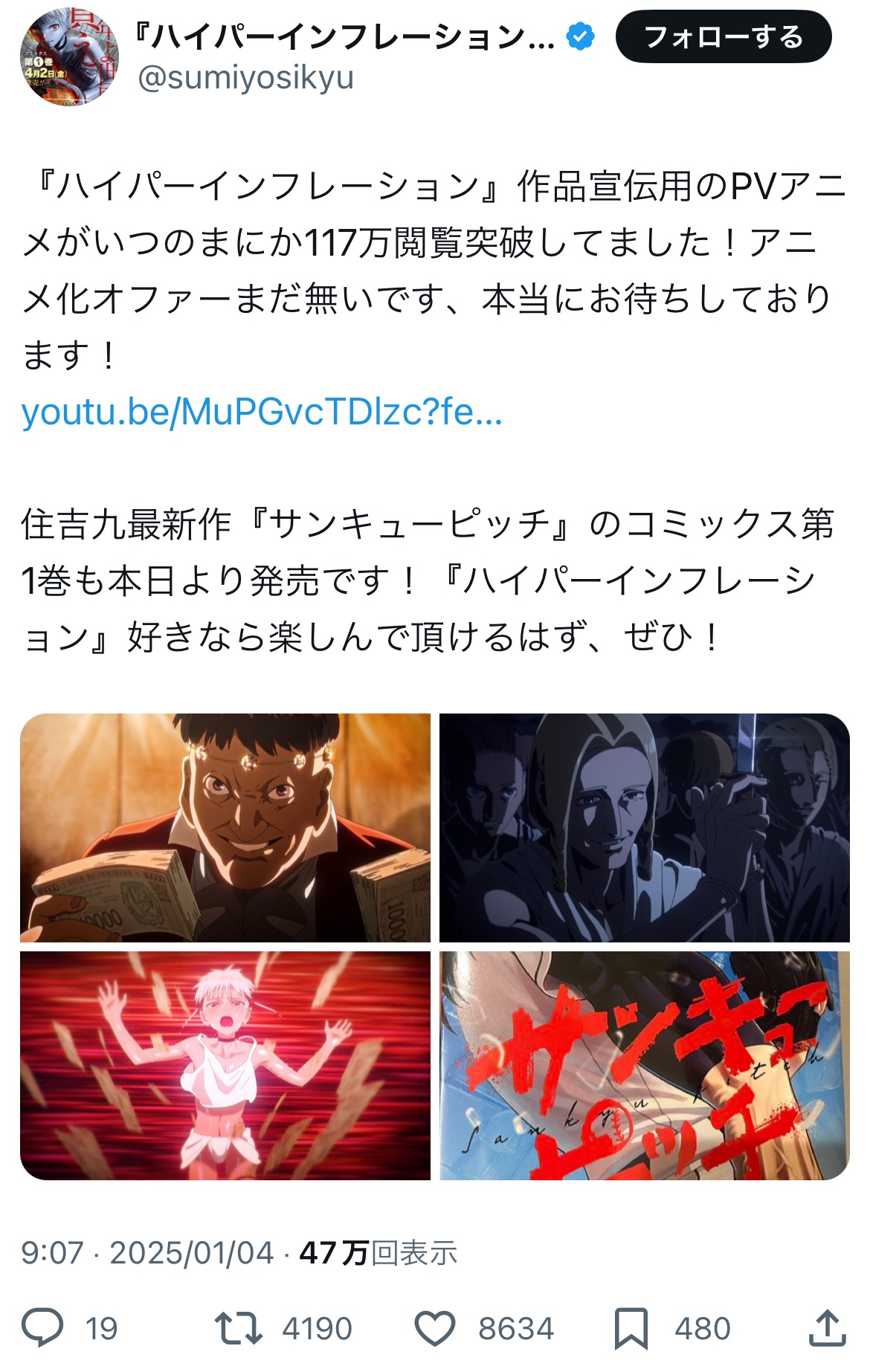 ホーム > ニュースetc > 【画像】ハイパーインフレーション作者「アニメ化オファーまだ無いです、お待ちしております!」 2025/01/04 1:それでも動く名無し:2025/01/04(土) 14:24:09.02 ID:UUIcRxY30 2:それでも動く名無し:2025/01/04(土) 14:24:44.76 ID:BKYx6ubr0 深夜でも無理なの? 続きを読む Source: ラビット速報 - ニュースetc